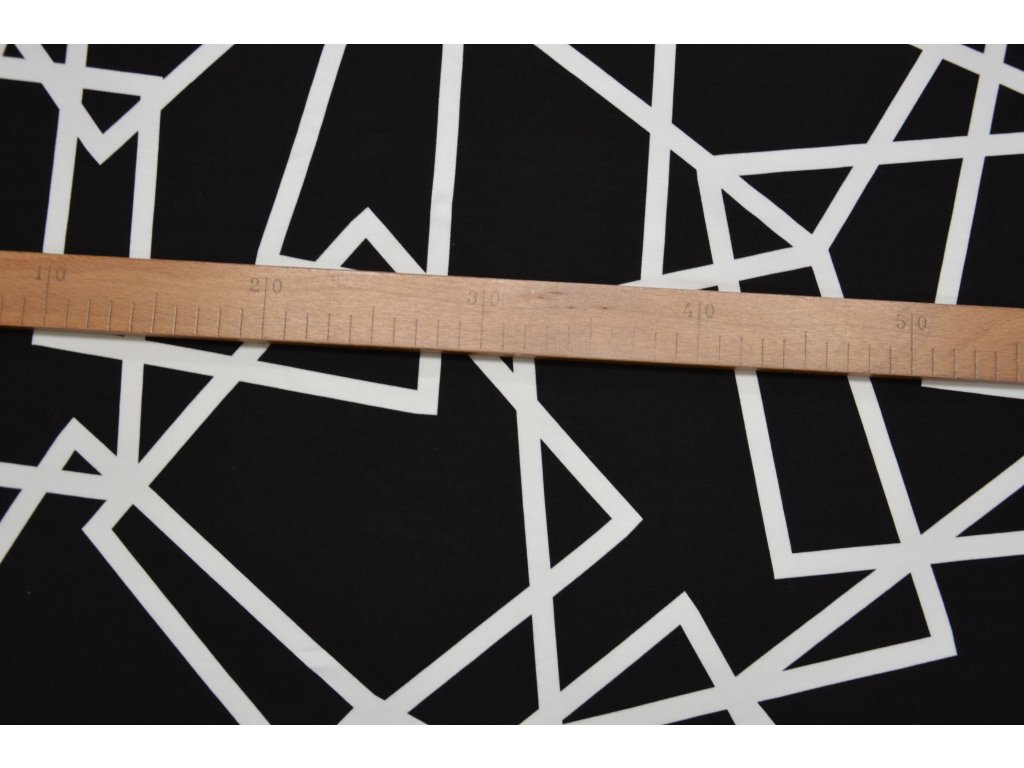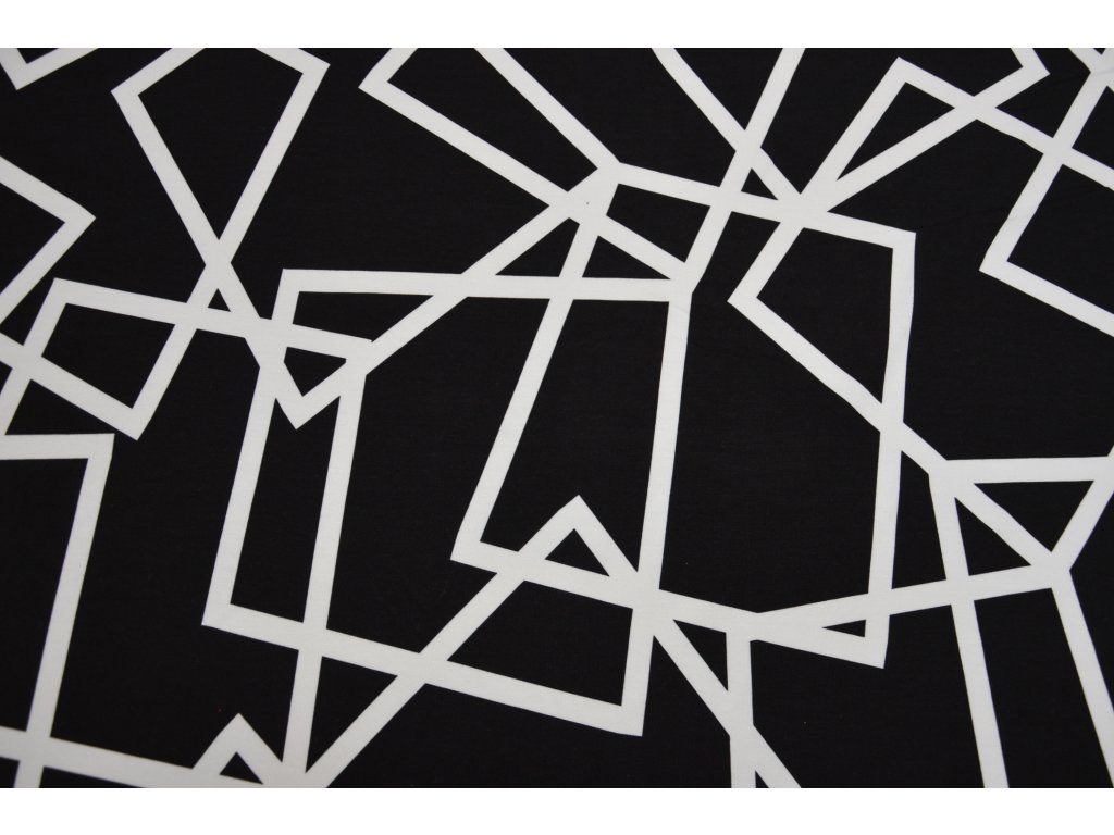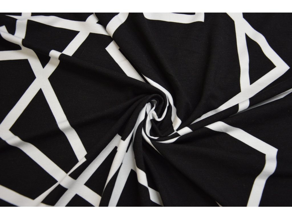 Bavlněný úplet elastický - černobílý geometrický vzor