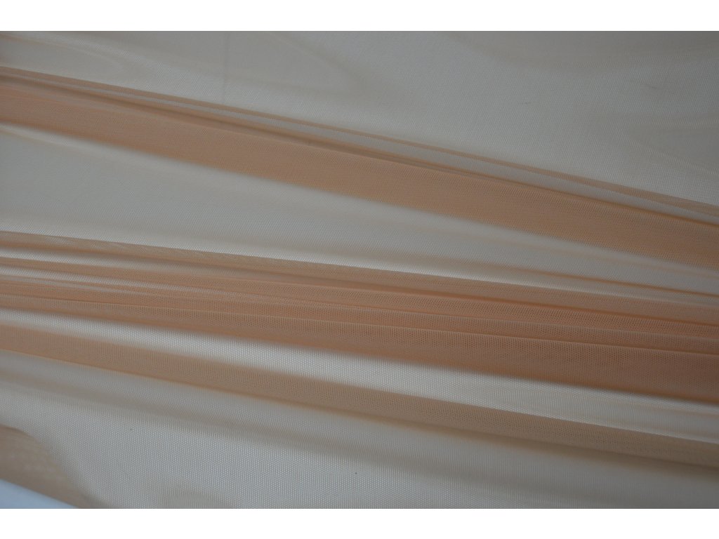 Elastický meruňkový tyl. Jde o splývavou, padavou a elastickou variantu této látky. Elastické všemi směry.