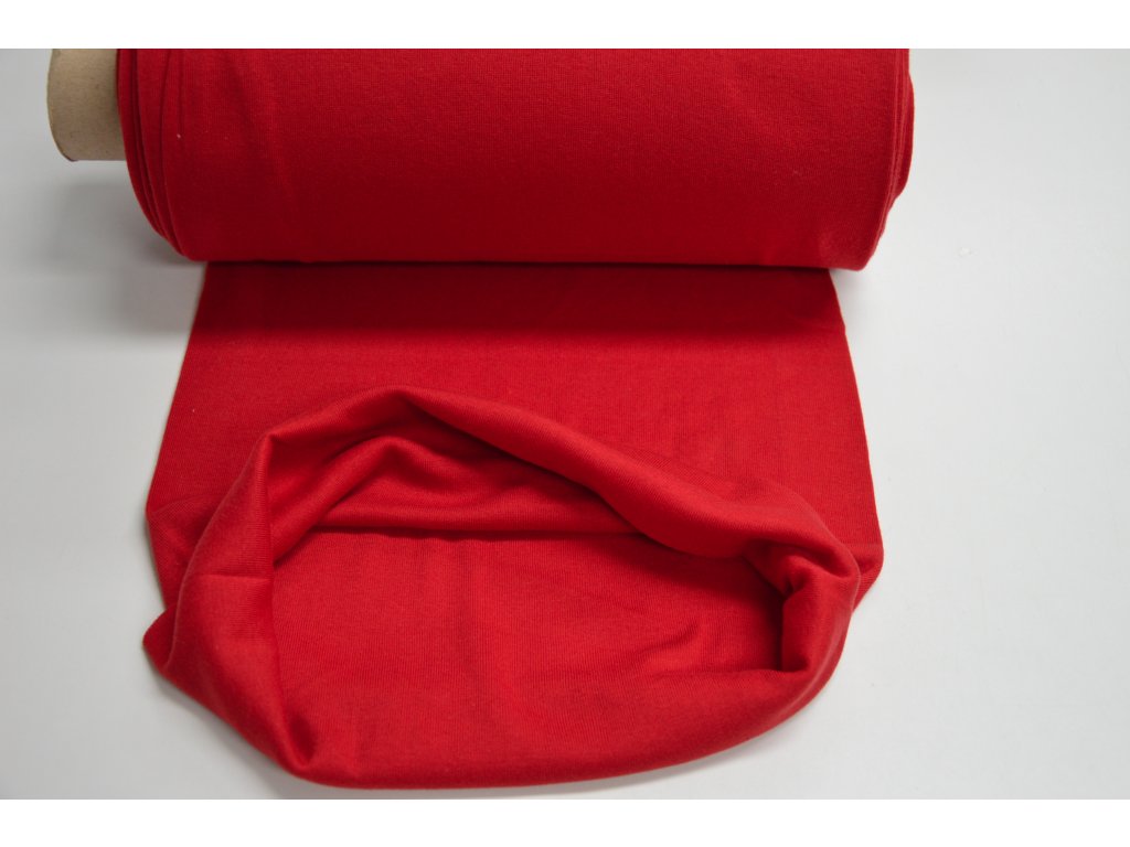 Náplet bavlněný hladký s příměsí elastanu - červená. Elastický hlavně do šířky.