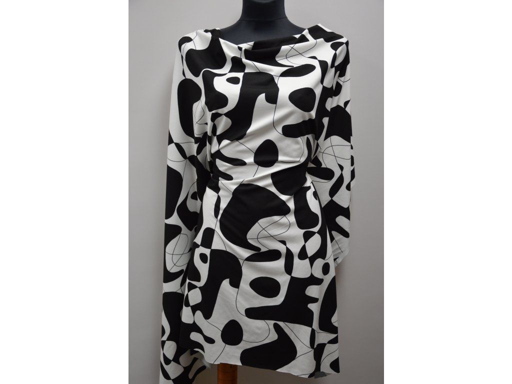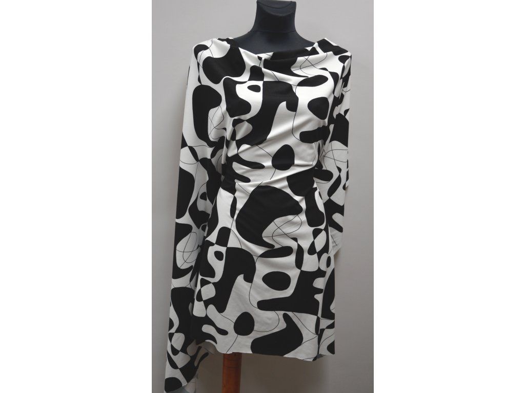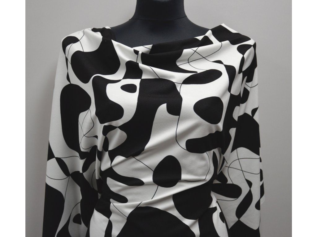 Viskózový úplet elastický se zajímavým vzorem. Elastický všemi směry. Černobílá kombinace.