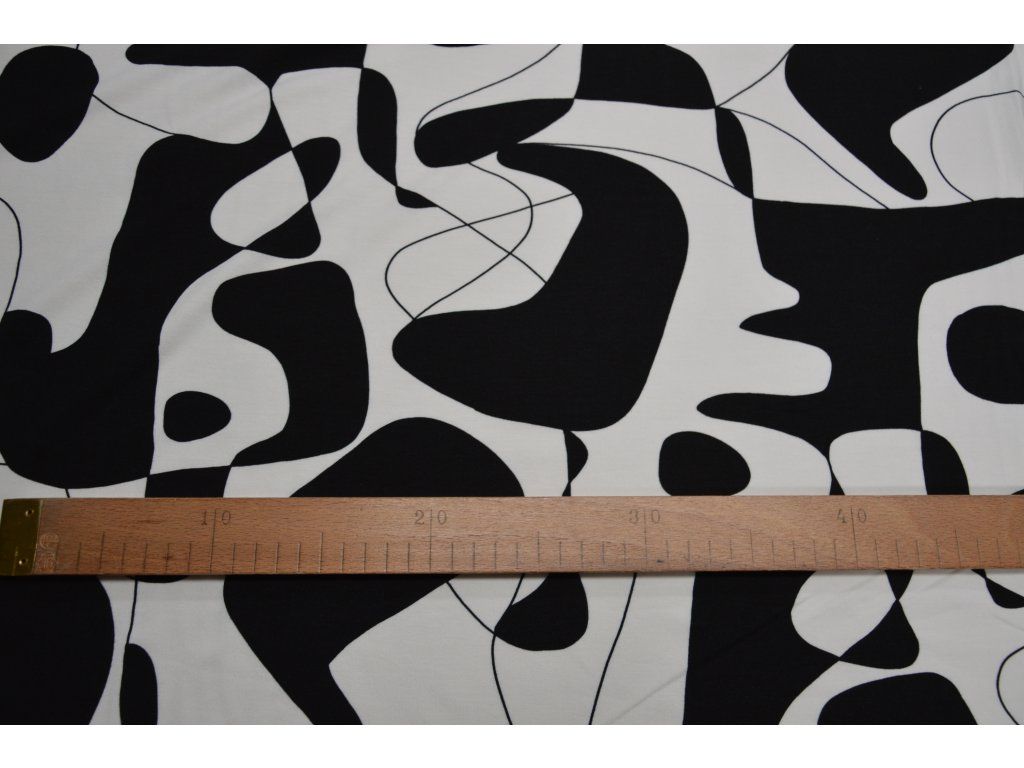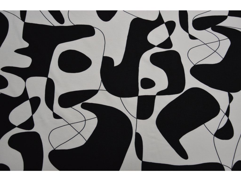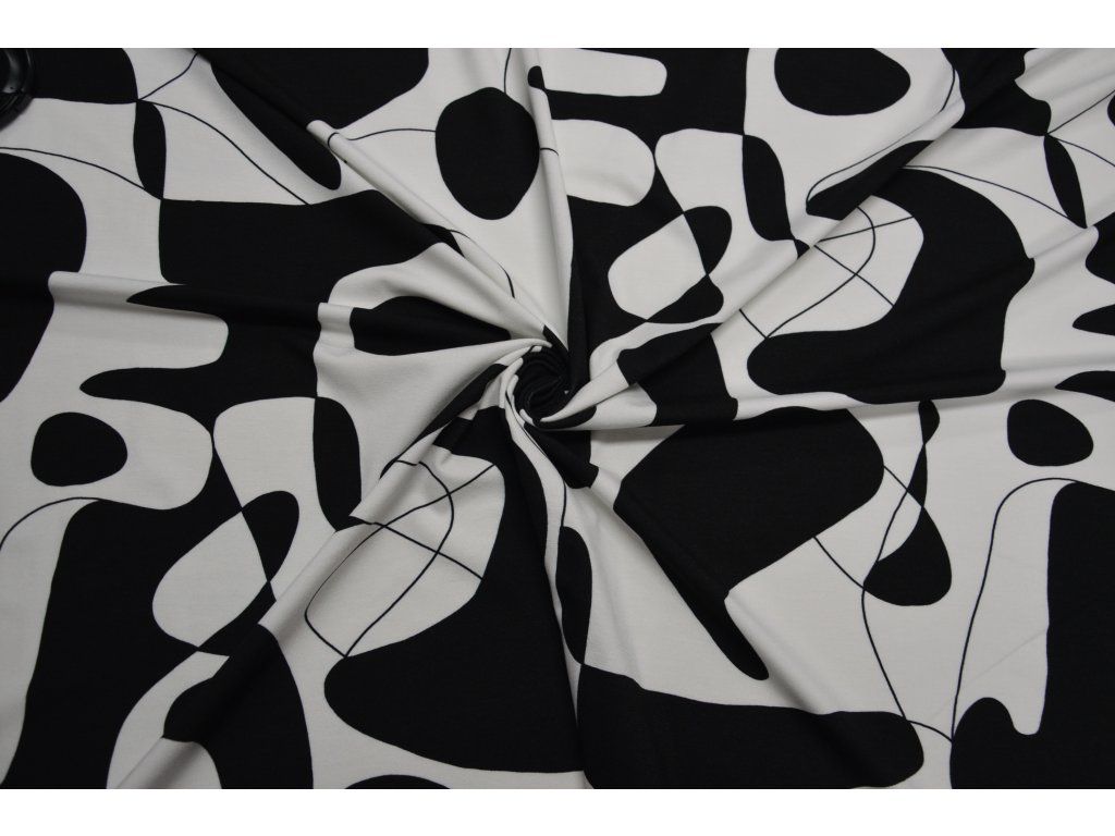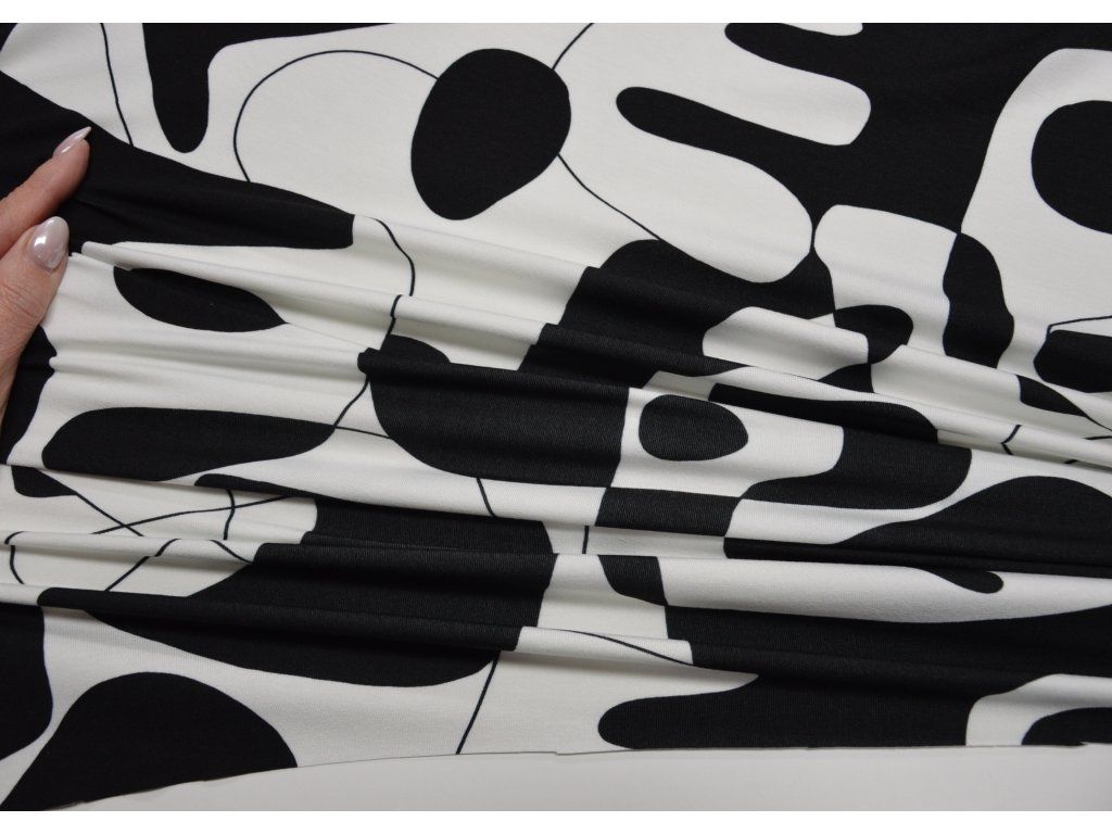 Viskózový úplet elastický - černobílý picasso