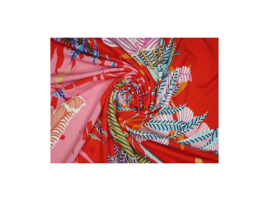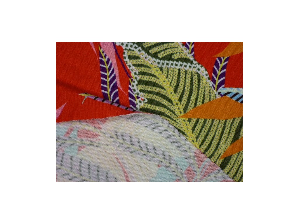 Krásný úplet elastický z viskózy s efektním potiskem.