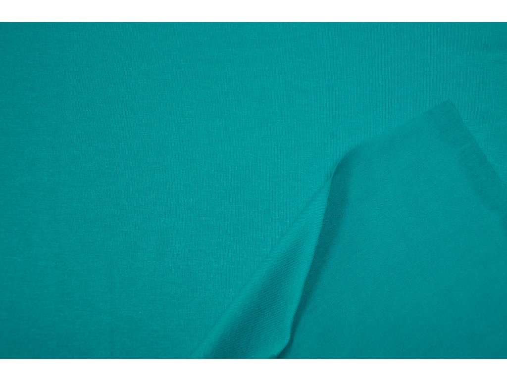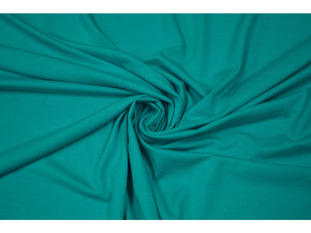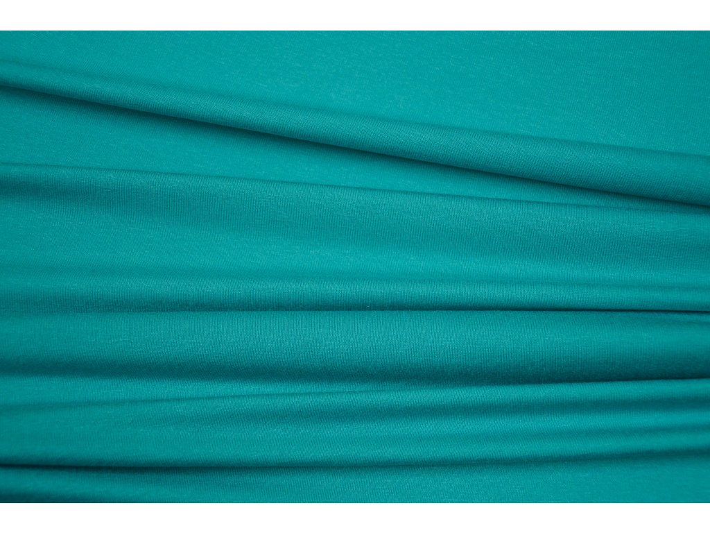 Viskózový úplet elastický , tenký a splývavý. Elastický všemi směry. Nádherný odstín zelenomodré barvy.
